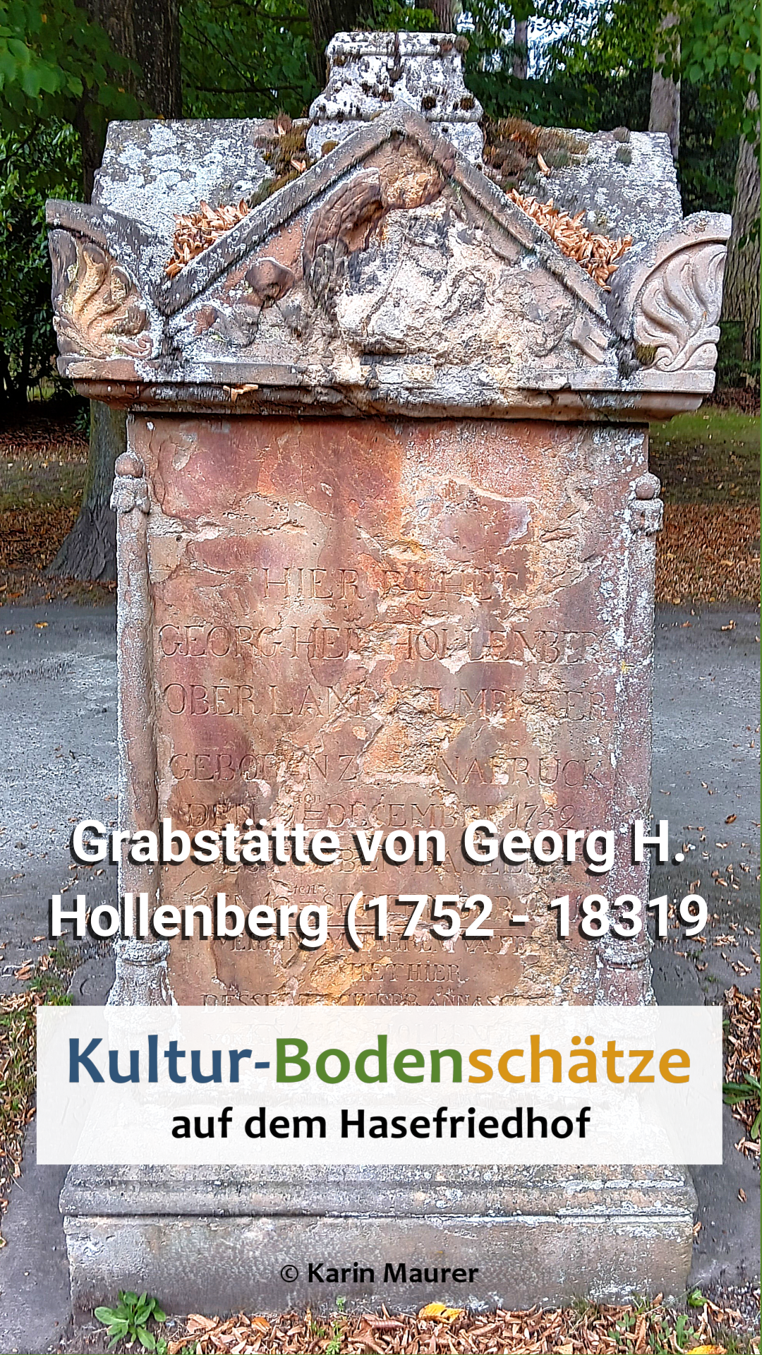 Zahlreiche in Vergessenheit geratene Gräber hat Karin Maurer auf dem Hasefriedhof freigelegt. Sie hat Inschriften dokumentiert und zu den Beigesetzten recherchiert – z. B. zum Goldschmied und „Altermann“ (Zunftvorsteher) J. H. Holstein (1775-1828), oder Stadtphysikus J. D. Droop, der in Osnabrück die Pockenimpfung einführte.