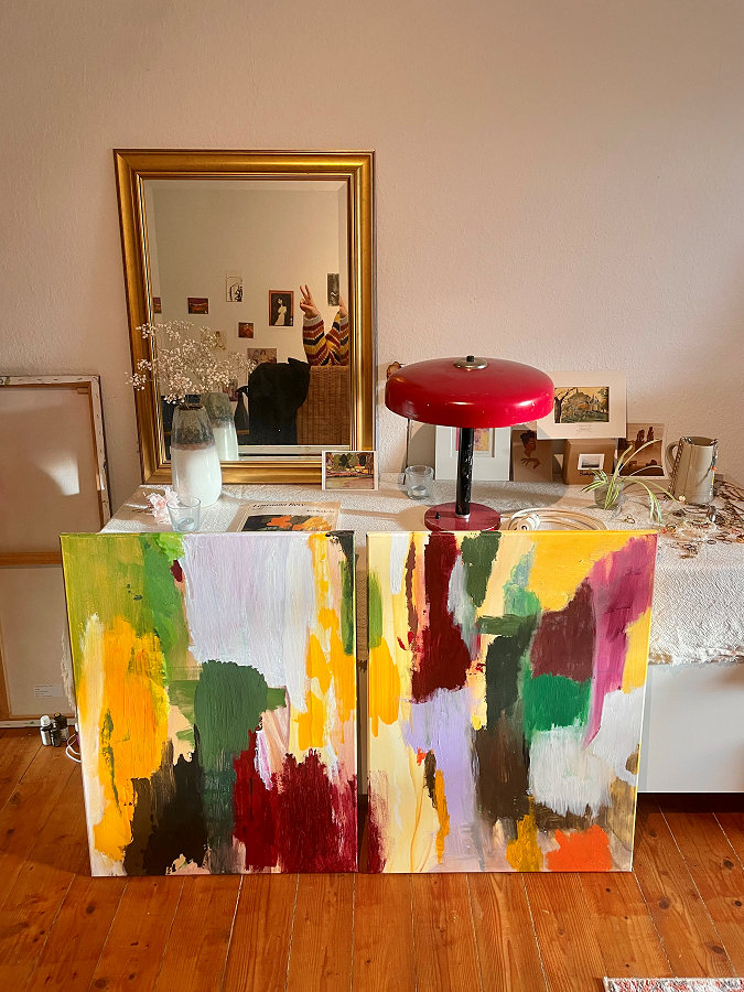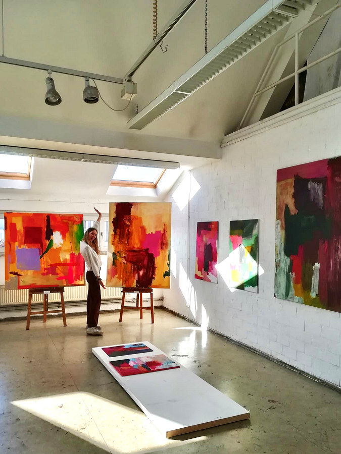 Ich bin Alina, studiere Kunst an der Uni Osnabrück und bin ein Gefühlsmensch durch und durch, und das spiegelt sich auch in meinen Werken wider. Die Malerei ist meine liebste Meditation, weil ich mich währenddessen in den Farben und Kompositionen verliere. Auch wenn ich viel skizziere und Farbmuster erstelle, ist mein Endresultat immer das Ergebnis meiner Intuition.