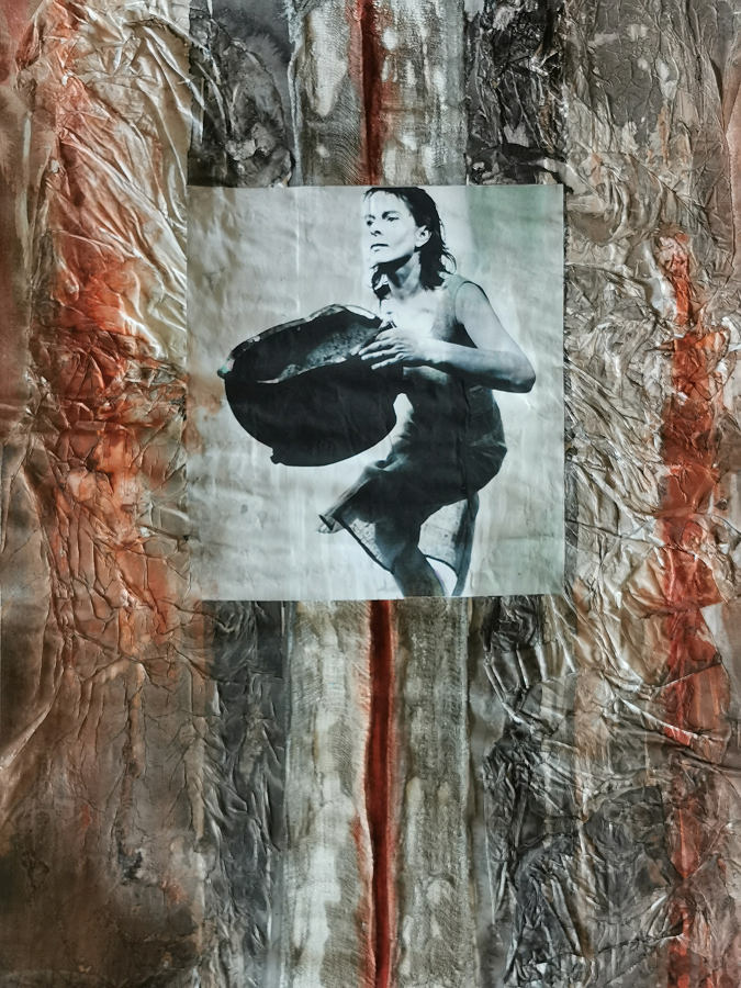 Dem „flüchtigen“ Medium Tanz setzt Erneste Junge bildnerische Arbeiten entgegen – ein medialer Wechsel, der Raum schafft für innere Bilder, für ihr Experimentieren mit Materialien und ihre visuelle Neugier und Ästhetik.